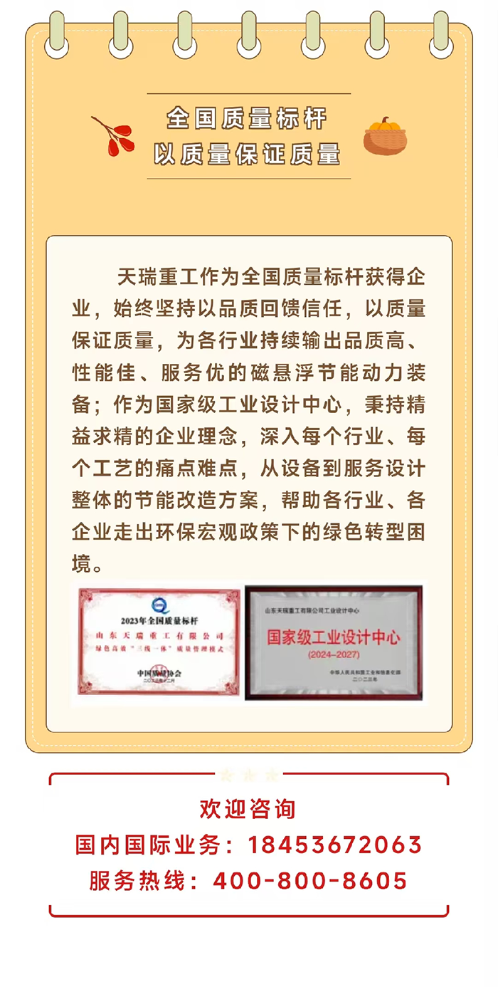 山東天瑞重工有限公司是一家從事磁懸浮動力技術(shù)研發(fā)的高新技術(shù)企業(yè),是國家企業(yè)技術(shù)中心,全國磁懸浮動力技術(shù)標(biāo)準化工作組秘書處單位,山東省節(jié)能環(huán)保裝備產(chǎn)業(yè)鏈“鏈主”。