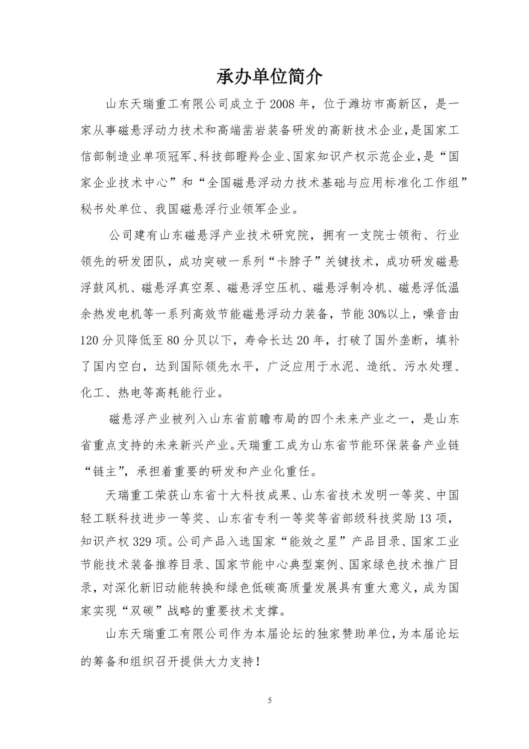山東天瑞重工有限公司是一家從事磁懸浮動力技術(shù)研發(fā)的高新技術(shù)企業(yè),是國家企業(yè)技術(shù)中心,全國磁懸浮動力技術(shù)標(biāo)準(zhǔn)化工作組秘書處單位,山東省節(jié)能環(huán)保裝備產(chǎn)業(yè)鏈“鏈主”。
